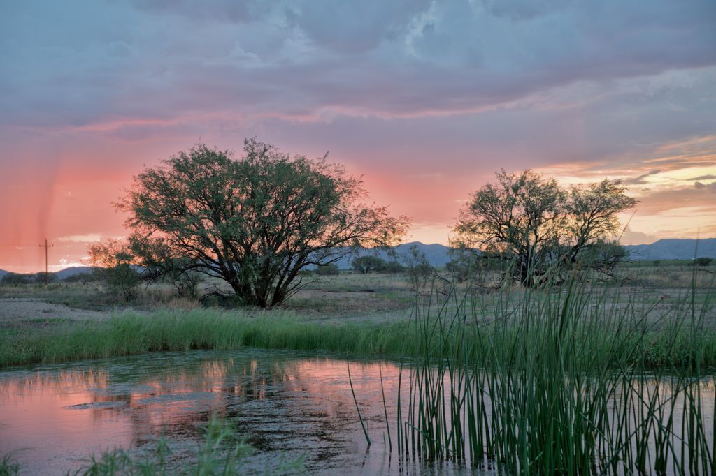 Last weekend I got to spend some quality dad time with the kids. Brandie had a commitment for the afternoon so the kids and I were able to venture southward a bit to the Buenos Aires National Wildlife Refuge. The refuge has a walking trail in Arivaca, AZ. The loop is a bit over a mile and trails are smooth enough for the kids’ wagon. I certainly did more pushing than they did walking; exploration happened nonetheless. My plan had been to spend an hour or so at this place and then drive about 15 miles to the main entrance of the refuge and try to find a body of water for sunset photos. We’ve had some rain recently so my chances of locating water were reasonable. From there, I planned to let the kids run around wherever I set up. We brought activities, binoculars, bug nets, bug boxes, bicycles, helmets, a camping table, and sandwich dinners. As best laid plans prophetically go, we barely got there in time for much of a sunset. We pulled through the gate just a few minutes before sunset and I hurriedly pulled over at the first body of water I saw (passing up a reasonable opportunity to photograph a tarantula perfectly centered in the road).
