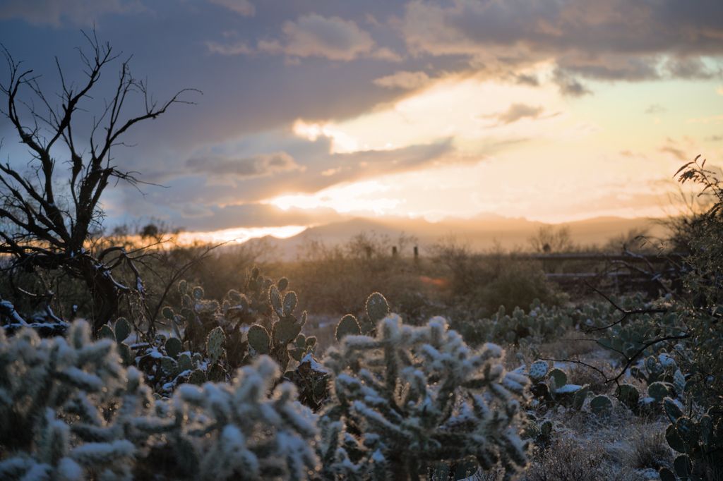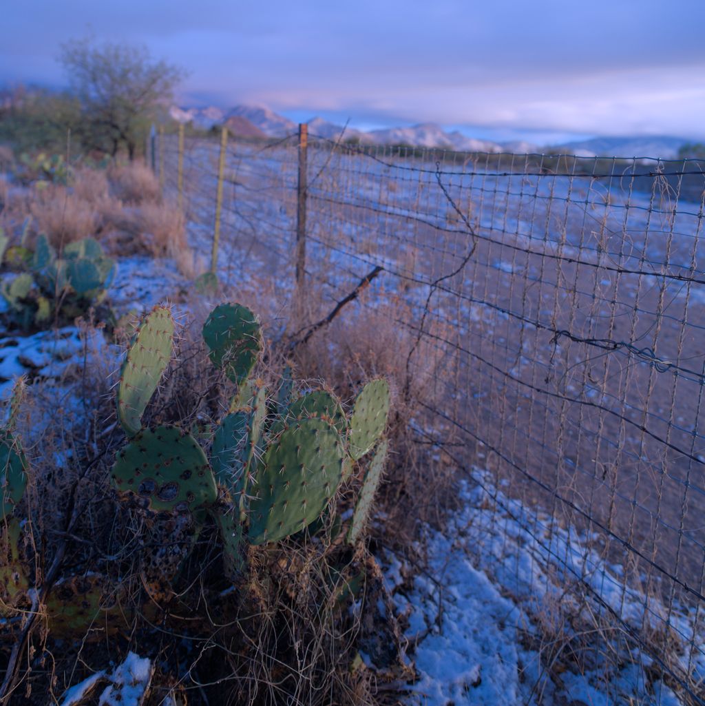 The header photo is a good place to start. What I like about this photo is how out of place things seem. The typical photo of cacti is one with a barren wasteland and a pretty sunset. This photo busts that stereotype. The hazy mountains in the back defy the typical southern Arizona backdrop. The snow (ice) on the cactus is also a surprise. I like that the tree behind it has also gathered some snow.