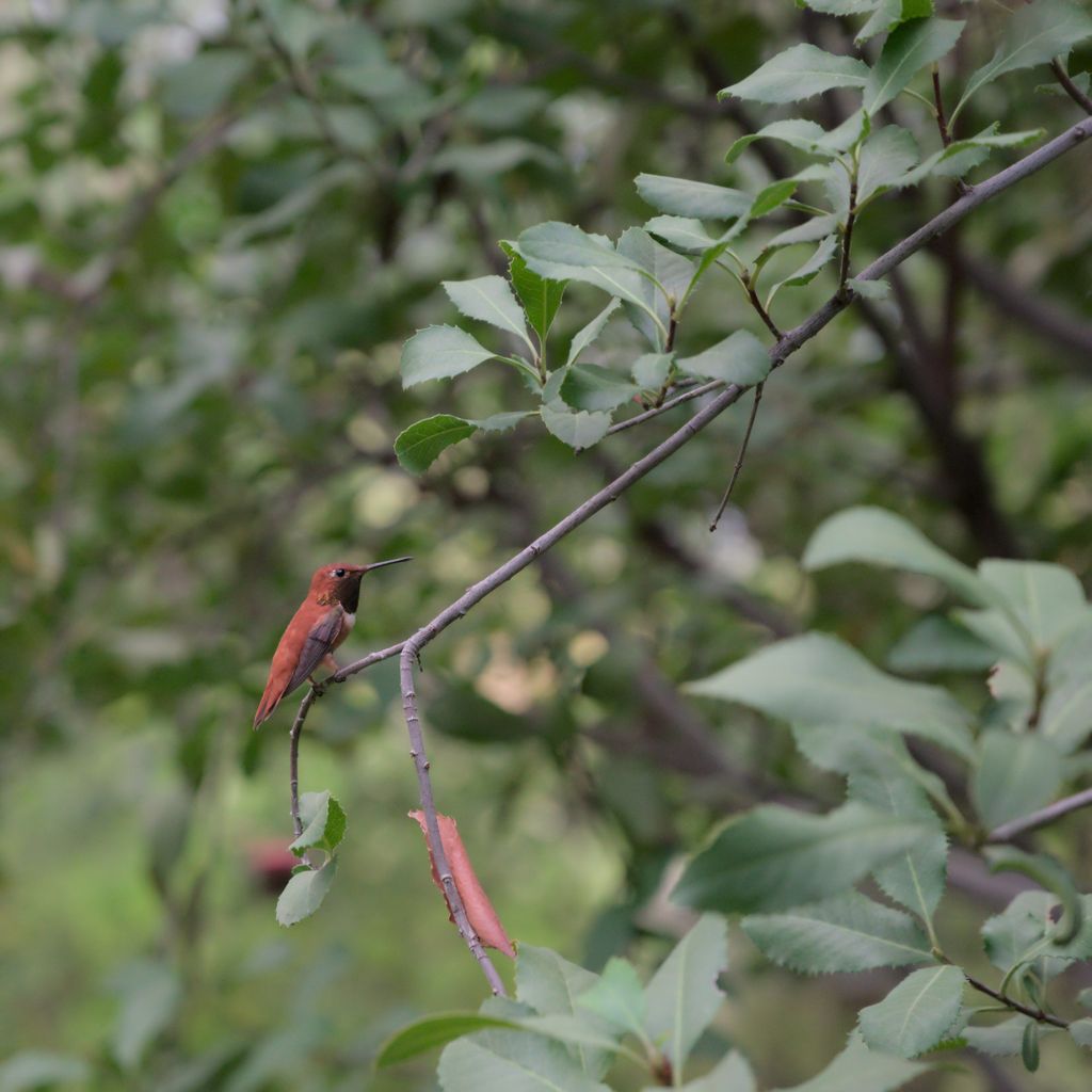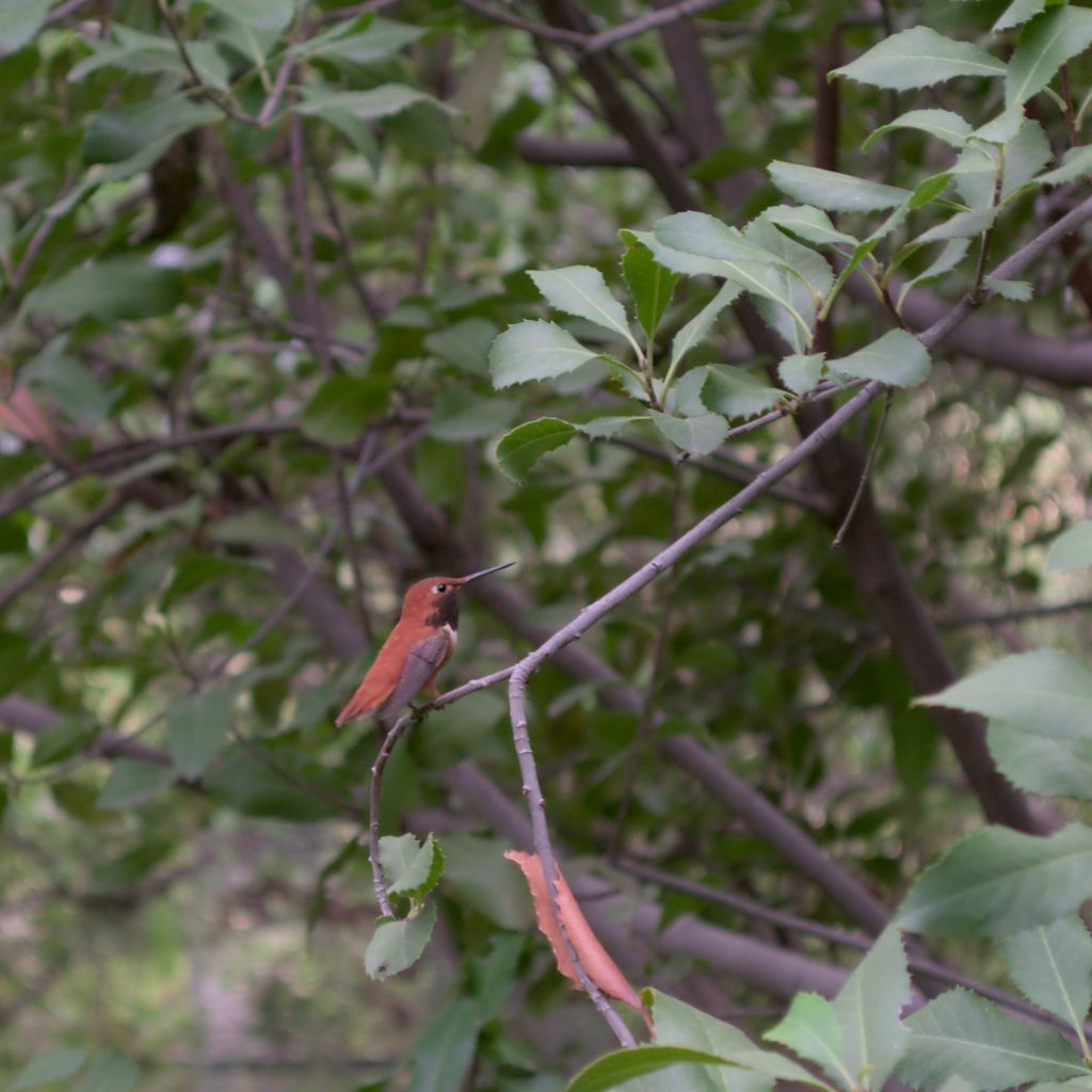 This Rufous Hummingbird really likes this branch. He’s a creature of habit. The picture on the left is from our first week at the museum while the image on the right is our second. The exposure settings of the two photos don’t create an apples-to-apples comparison of the cameras but it does show that I learned to make the bird stand out a bit more by adjusting my angle slightly and blurring the background. I also like that the dead leaf (that matches his color) was there both weeks. It’s almost as if he intentionally placed it there to enjoy the same way I would hang a photo in my house.