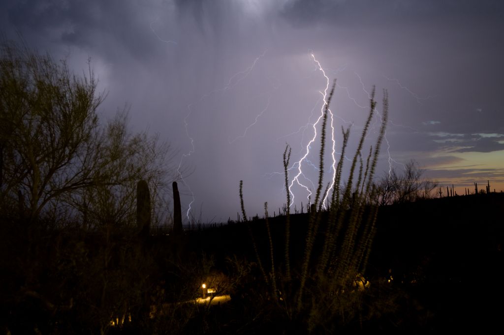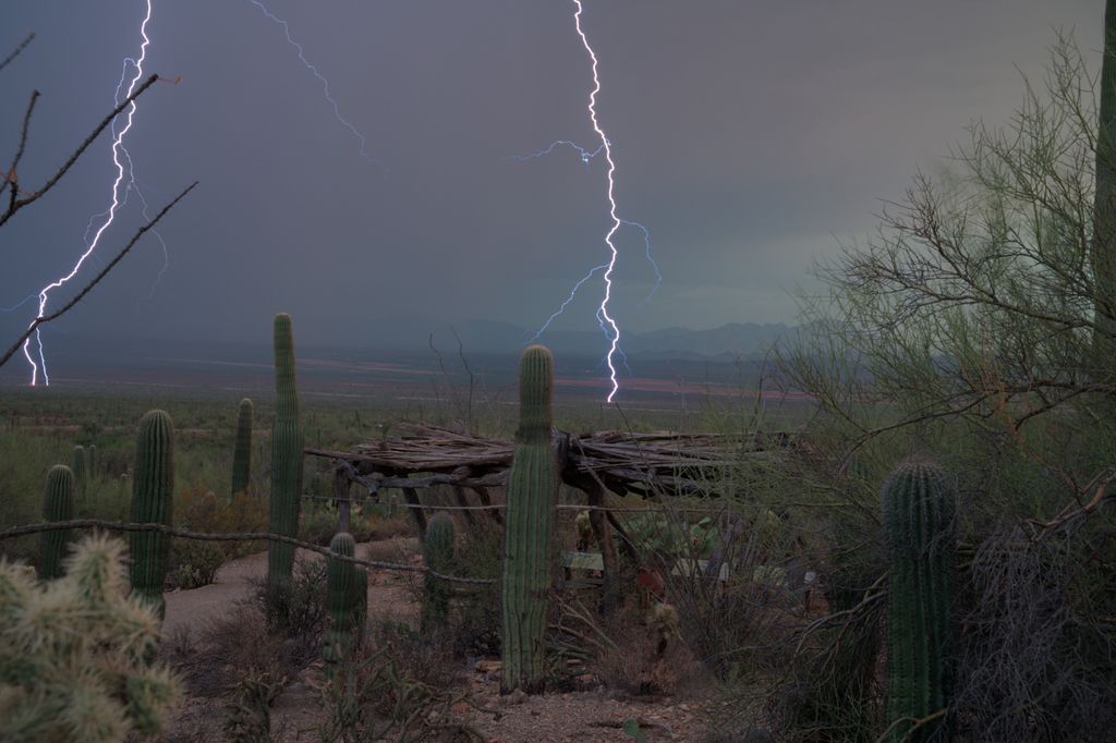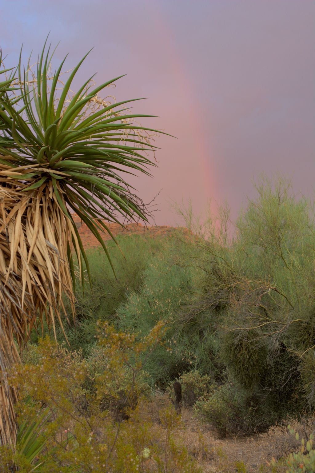 Both weeks we’ve gone, storms have blown through the west side of Tucson. The first week was quite beautiful. As a storm began to roll in, we were given rainbow that just happened to arc around this Mountain Yucca. I tried to pull some of the colors out a bit more but the dust in the air made the segmentation difficult.