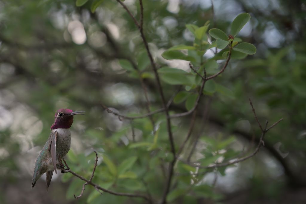 The desert museum has a hummingbird aviary. This Anna’s Hummingbird seemed like it had a bum wing. When it landed on this branch, one wing would hang a little different from the other. It didn’t seem to make a difference in its flight; from my perspective he could still zoom around pretty happily.