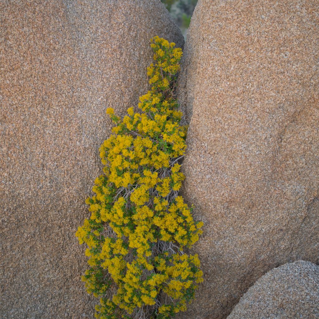 When we made our reservation a few months prior options were limited. However, upon arrival, I was pleased with our choice. A large rock provided enough shade at that time of day to keep us out of the sun. We brought out the bin of toys for the kids to play with. I was given many piles of dirt in frisbees under the guise of delicious warm pies of varying flavors. I noticed these yellow flowers poking out from between a couple of rocks. Things that seem to sprout from rocks like this are funny-looking to me. I like the texture of the rock here, also.