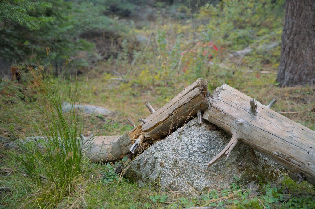 I found this fallen tree around our campsite. I wish the bush on the left were not there. It’s in sharp focus since it’s at the same distance from the sensor as the rock and tree but it’s just a little distracting. It’s been long enough now that I can’t remember if I walked around trying for a different composition but I think this scene would’ve behooved from it. The breaks in the tree around the rock are interesting but I’m not sure that this photo shows it very well.