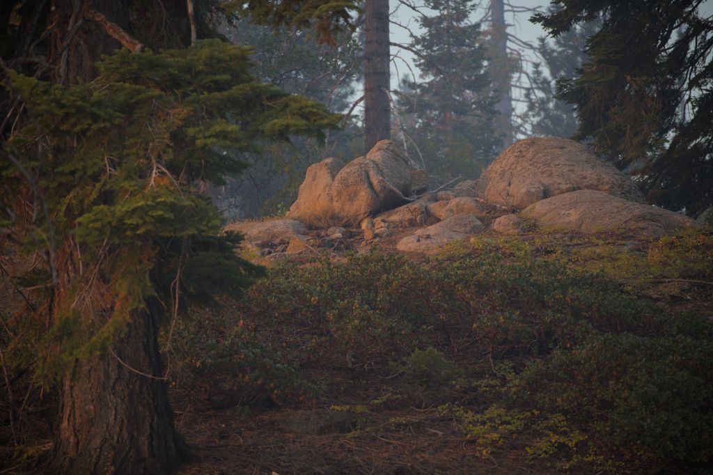 One nice thing about a sky filled with smoke is that you can get the golden hour effect at all hours. And if it also happens to be the golden hour, the light is further embellished. These rocks seemed to glow at this time. I only took one photo of this because I didn’t think it would turn out but I’m pleasantly surprised by this photo.