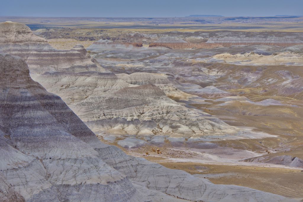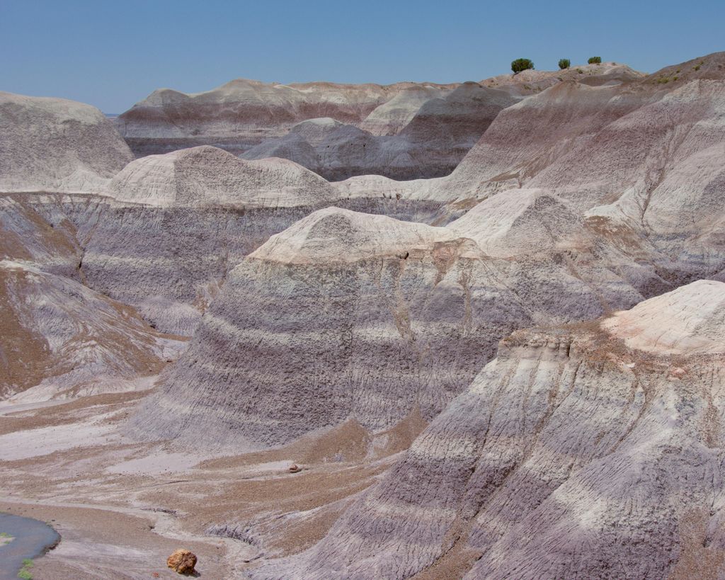 We are trying to hit as many National Parks as we can in our travels. The kids get their iconic smashed pennies to put in their collection books and we can live as proud park-goers. On our way home, we made a stop in Petrified National Forest. My father-in-law loves rocks. All of ‘em; everywhere. Why - I do not know. Although I do not share this strange obsession, the petrified wood was quite neat to read about and observe. I tried to get some good shots of these beautiful paperweights but I’m not skilled enough to have come up with anything worth showing. Other sites in the park were easier to photograph and came out quite nice. When we got to the Blue Mesa area we went ahead and took a little hike. It was hot - very hot! We took a short and easy hike far enough to see the coloration of the rocks. The tiny bushes in the top right balance the path and rock in the bottom left. The cloud that was rolling in dims the upper part of this photo making for some nice depth.
