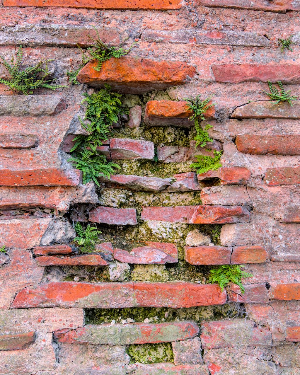 I don’t typically like texture photos. Occasionally I’ll take them to (nearly always) mark them as “rejected” in Darktable during culling. This one however made the cut so I figured I’d put it in. As noted by Constantine’s Basilica in the previous picture, these buildings have been around for quite a while. Somehow, these little plants have made their way out of the old brick and make an interesting scene. The geometry of the brick contrasts nicely with the organic shapes of the little fern-looking plants.
