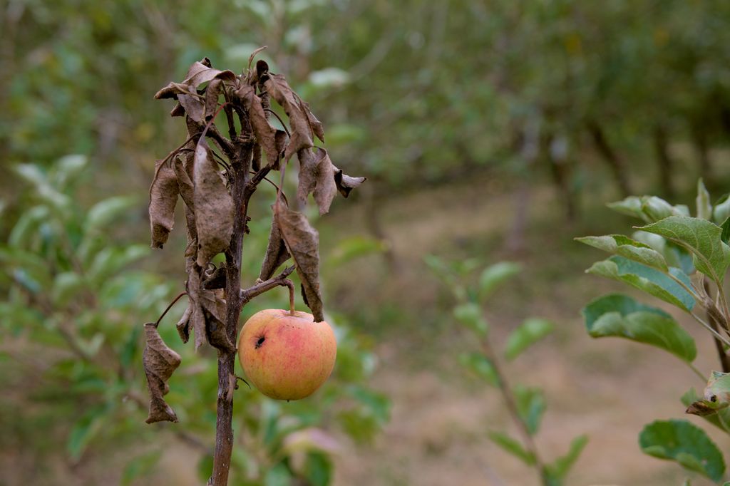 This apple tree seems to have bitten it and something seems to have bitten the last remaining apple on it as well. This, perhaps obviously, stood out above all the other green and thriving trees around. I thought it might be nice to highlight. The composition could use some improvement but I didn’t want the sky in the photo so I settled on this.