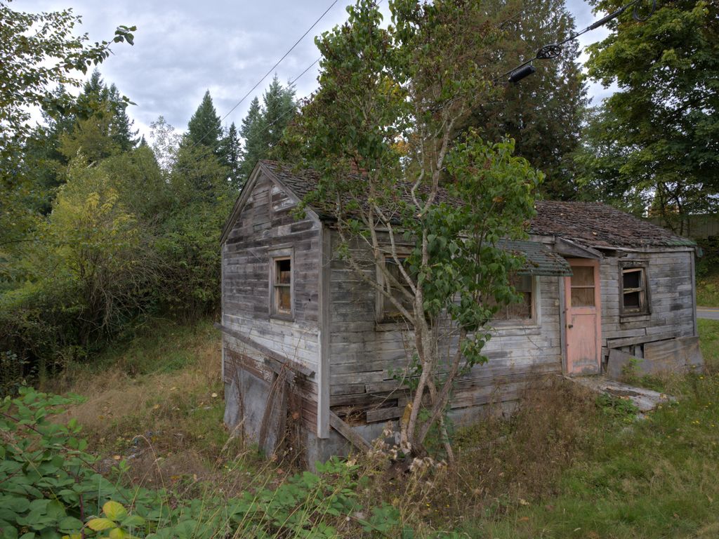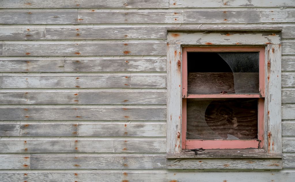 Finally this window. I wish the plywood wasn’t there but I’m not sure that I could edit it out effectively. I like this picture because you can tell that the builder was meticulous. The panels of the siding have a clear pattern of nails - two per board, presumably, along each stud. When the carpenter got to the window, symmetry was followed. I really do love the window trim. The nail locations in the top trim piece are mirrored onto the bottom trim piece just as the left piece is mirrored on the right. Upon completion of this house, I’d bet that all the nail heads were hidden with paint and thus the care that the builder took was also hidden. Over time the elements revealed the location of each nail. The yin-yang shape of the broken glass makes for some visual interest as well.