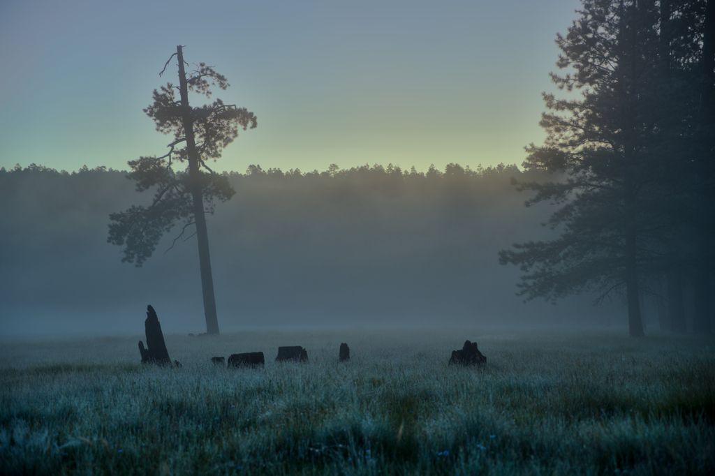 The next morning, I headed toward a field I had found, also, on satellite imagery beforehand. The rain from the night before made for some really nice fog that morning. This image stood out to me immediately when I got to the field and I’m very happy that it turned out as well as it did. I proceeded to take some other shots from different angles, including the header photo of this post. I don’t feel like any turned out as nicely as this one. I like how the sun is coming through the fog at the tops of the trees and how the trees on the right have fog running through them. I made an attempt at cropping the trees out but much preferred this version. It’s nice that the varying shaped stumps and the one leaning tree were there for subjects. It may have been slightly more preferable to get closer with a wider lens to play with the size of the stumps and leaning tree - something I should keep in mind.