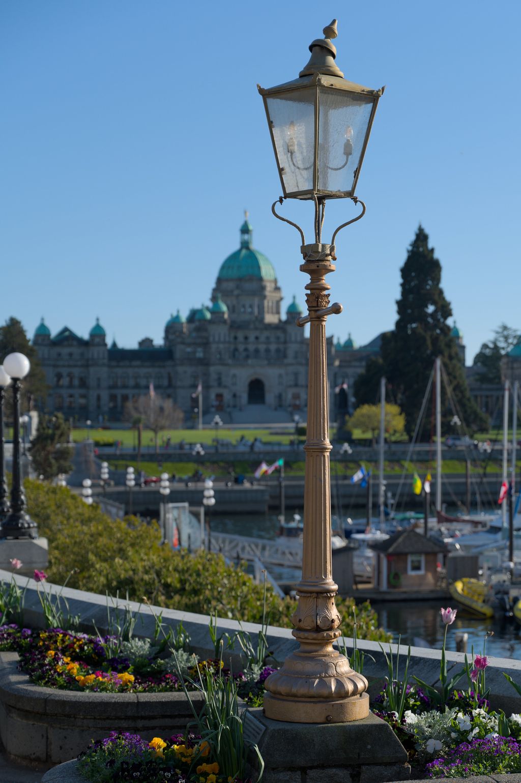 I found this lamp post with the tilted top. I thought it was a fun piece and like how the dome of the parliament building behind it fits with the curves. I tried a crop with the lamp centered but I prefer this one better. I’d like to remove the other lamp posts on the left at some point because I think they’re too distracting.